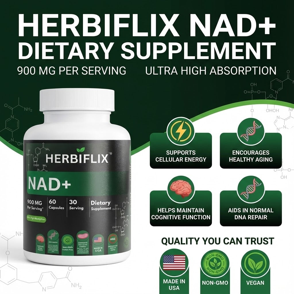 Support energy, metabolism, and cellular vitality with Herbiflix NAD+ 500mg Complex.