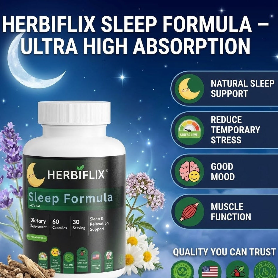 This Sleep Formula is crafted to foster restful and rejuvenating sleep through a blend of natural ingredients. It is designed to promote a tranquil night’s sleep, leveraging the synergistic effects of Valerian Extract, Chamomile, GABA, and more. This carefully formulated supplement supports your body's natural sleep cycle without the use of artificial additives, ensuring a holistic approach to better sleep.*